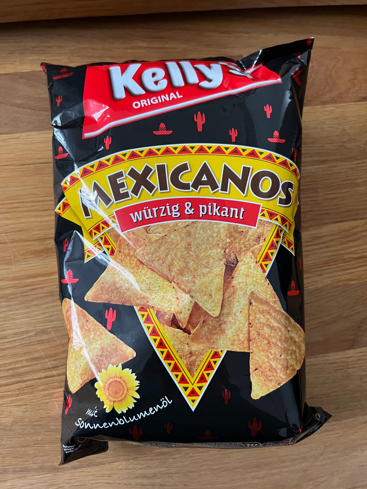 Another Kelly’s product line is a few sets of chips they call “nachos.” These are basically different varieties of tortilla chips, but with seasoning. Of the various American snack products, they’re closest to Doritos (which I’ve only seen occasionally here).